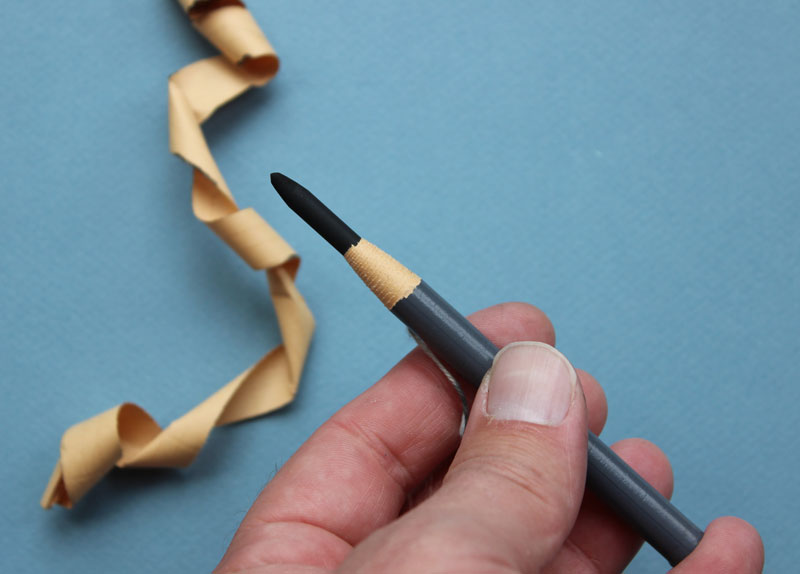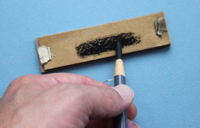 削铅笔一个尖端,你可以用砂纸磨垫。简单的用炭笔砂纸,旋转它。