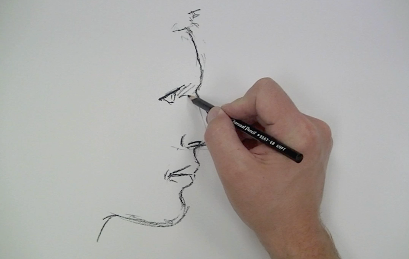 这幅图作为开始等高线图脸的轮廓。使用压缩木炭的铅笔。