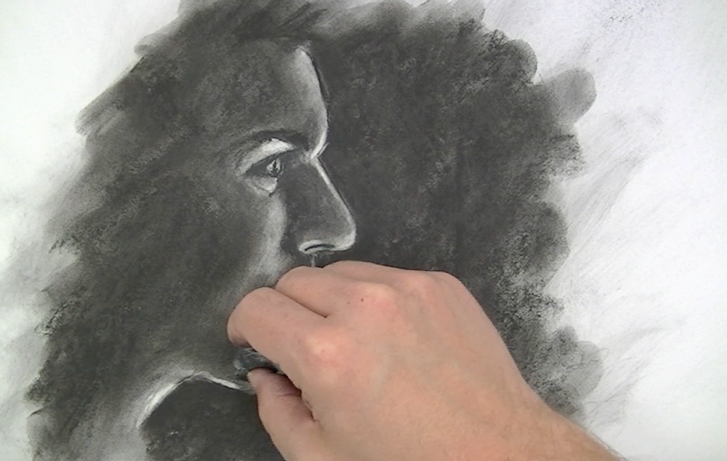 木炭也可以以类似的方式油画颜料——允许艺术家“推拉”在绘画过程中黑暗和轻值。木炭可以添加到使地区深,但它也可以删除使用捏橡皮减轻值或创建高光。